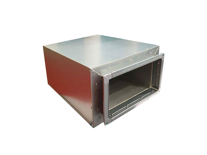 消聲降噪靜壓箱包括靜壓箱本體,靜壓箱本體的上表面和靜壓箱本體的底面均開設有通口,靜壓箱本體的內(nèi)側(cè)壁通過銷軸鉸接有兩組等距離排列的消聲片,兩組消聲片相互靠近的一側(cè)面均固定連接有松緊帶,靜壓箱本體的內(nèi)側(cè)壁固定連接有定位板,定位板的上表面固定連接有兩個吸音棉,兩個吸音棉相互遠離的一側(cè)面均與靜壓箱本體的內(nèi)側(cè)壁固定連接,定位板的上表面固定連接有彎板,靜壓箱本體的內(nèi)側(cè)壁固定連接有蜂窩板,蜂窩板的下方設有過濾網(wǎng),定位板的上表面開設有四個通風口。